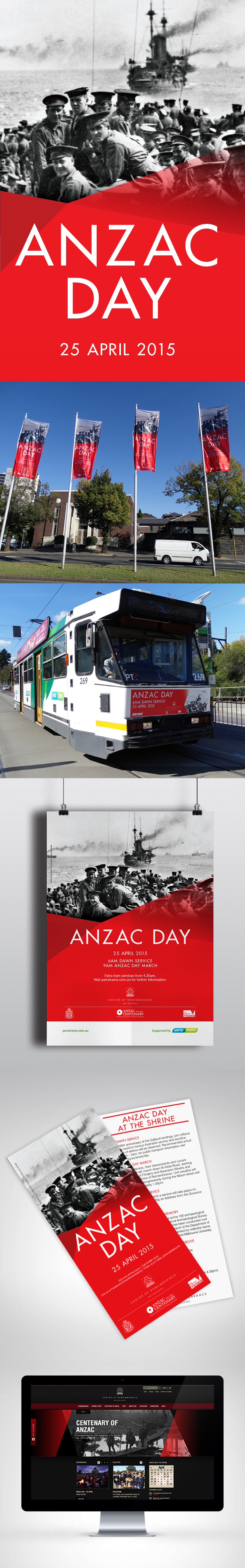 Think is honoured to continue to work with the Shrine of Remembrance to develop new and striking street banners, flyers, tram noses and posters annually to remind and encourage Melbournians to show their support by attending The Shrine’s ANZAC Day Dawn Service.