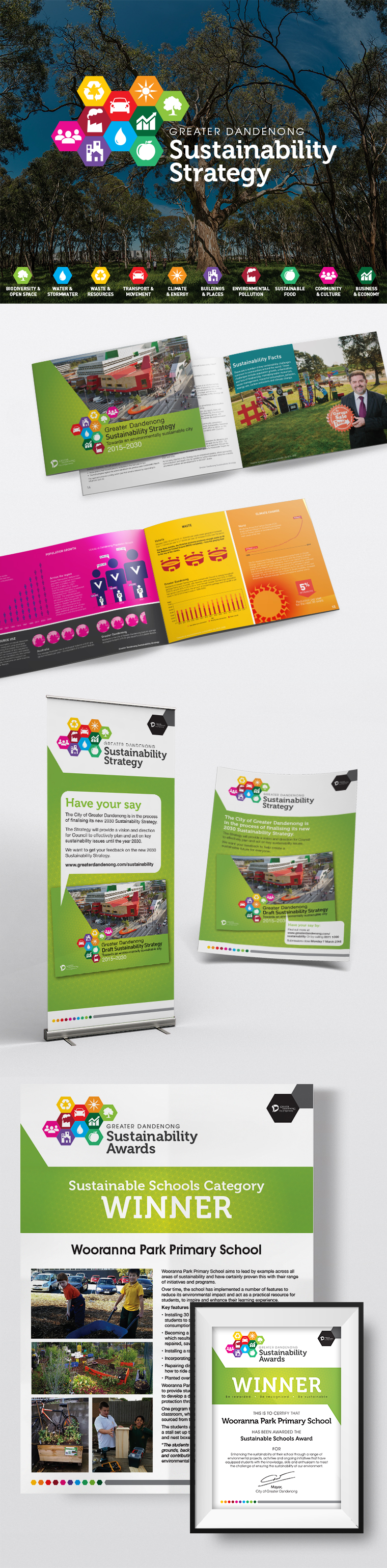 The City of Greater Dandenong are working with the local community, both residents and businesses, to make the City of Greater Dandenong one of the most sustainable cities in Australia by 2030. Think developed the brand identity and art direction on all collateral.