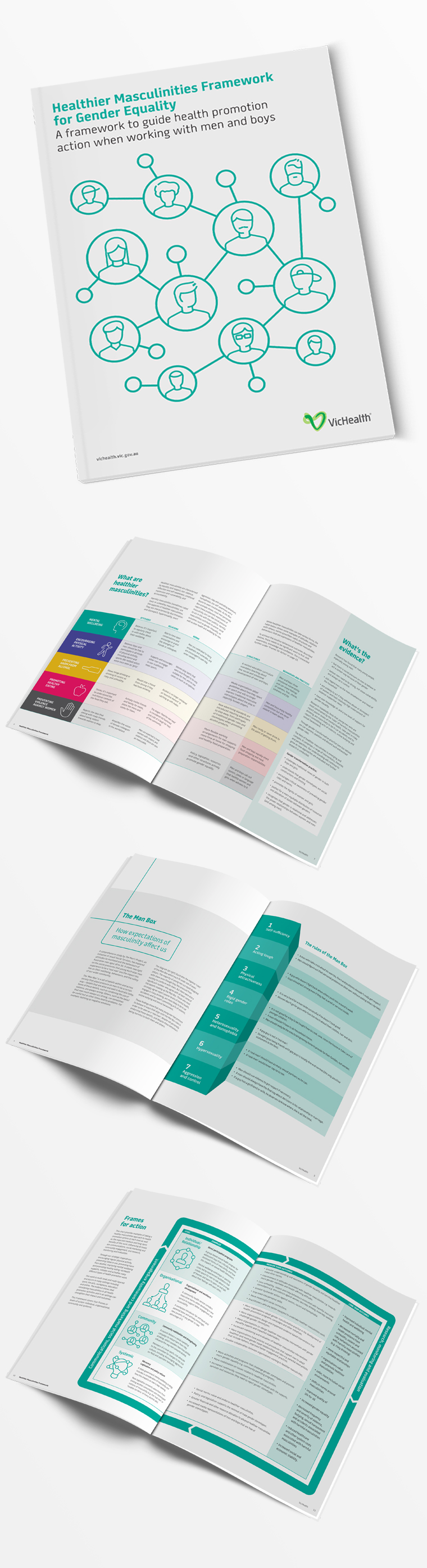 Working closely with VicHealth we produced an engaging and imformative report into healthier masculinities framework for gender equality.