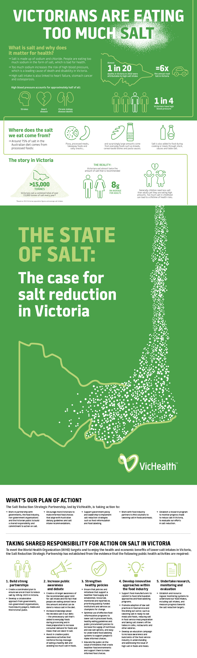 As part of a salt consumption awareness campaign; Think worked with VicHealth to create informative infographics to simply illustrate the high consumption of salt within Victoria.