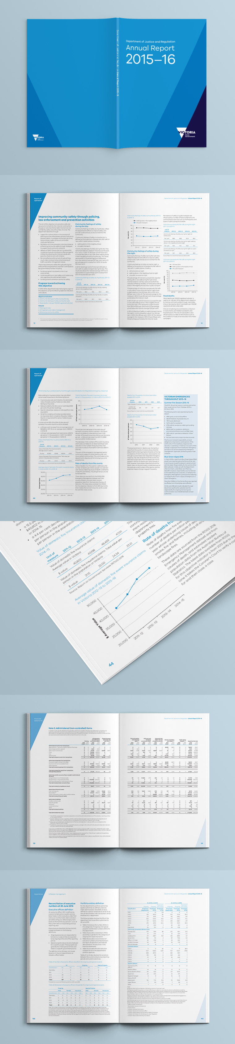 Think was approached to produce the 2015-16 annual report for Department of Justice and Regulation (DJR). The design must be designed in accordance with the new Victorian Government corporate visual guideline. Final deliverables included web ready accessible PDF and MS Word documents.